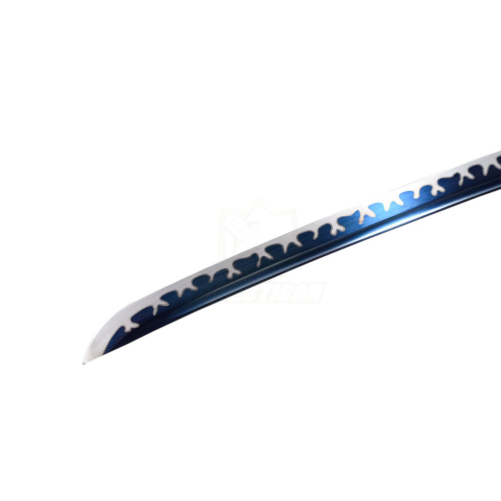 Blade Material: Spring Steel ( 9260/60si2mn Steel ) Oil quenching Tempered - Hamon: Fake Hamon(By polishing)-Sharpness: Sharp - Blade colour :Blue baking process(Oxidation layer)